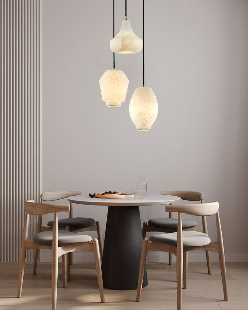 Vintage Simple White Natural Alabaster Dimming Pendant lamp for Home decor