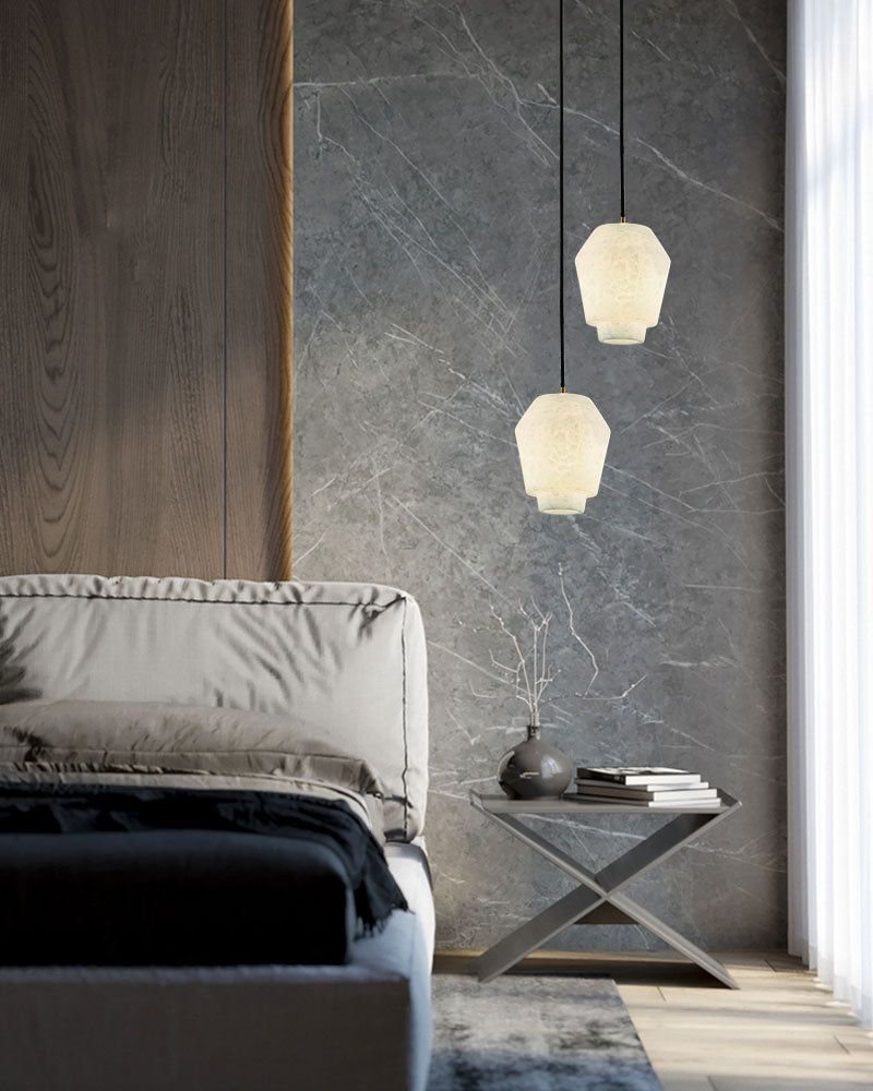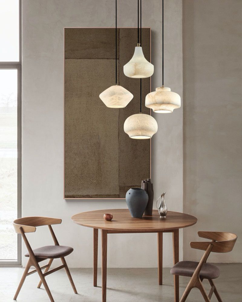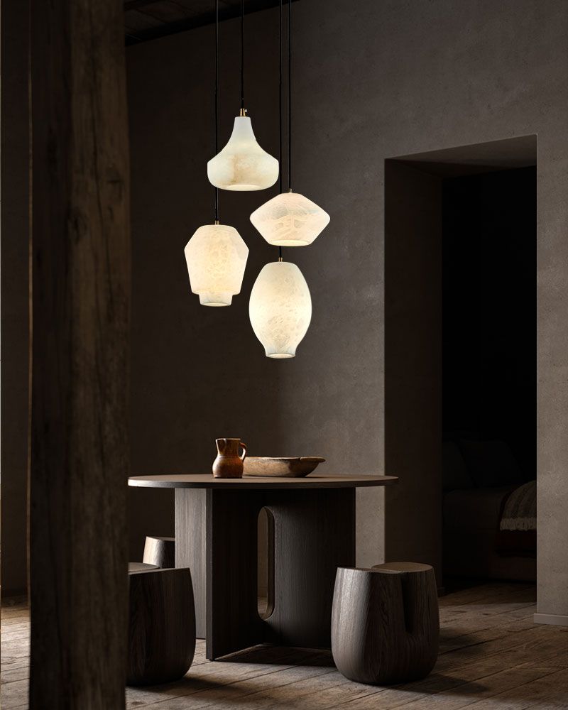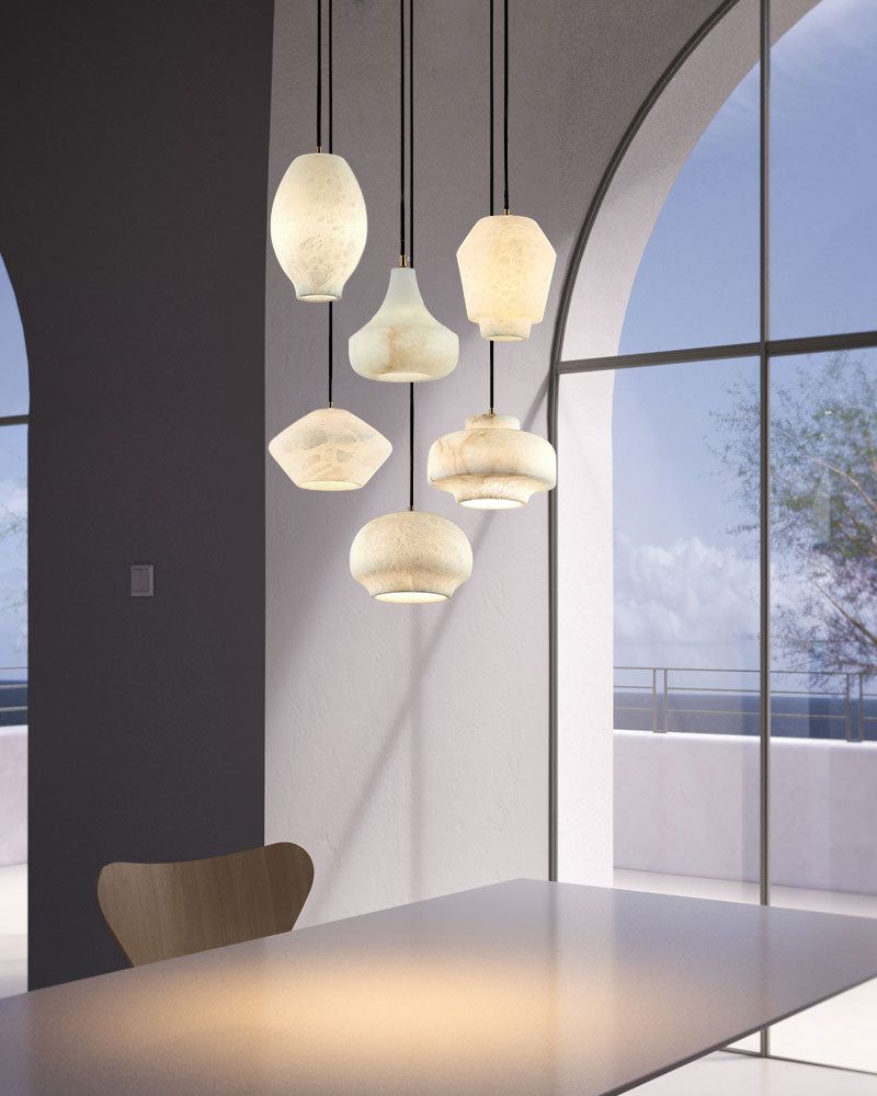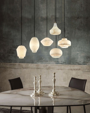 - Natural Alabaster Shade-Translucent marble with soft, unique veining for warm ambient light.