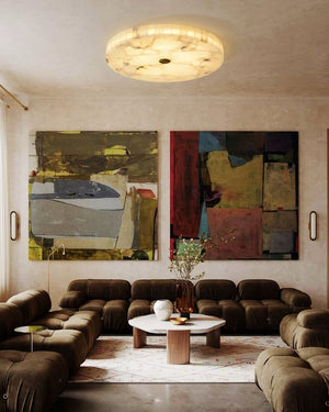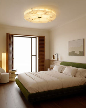 White Spanish Round Alabaster Flush Mount Ceiling Light for bedroom